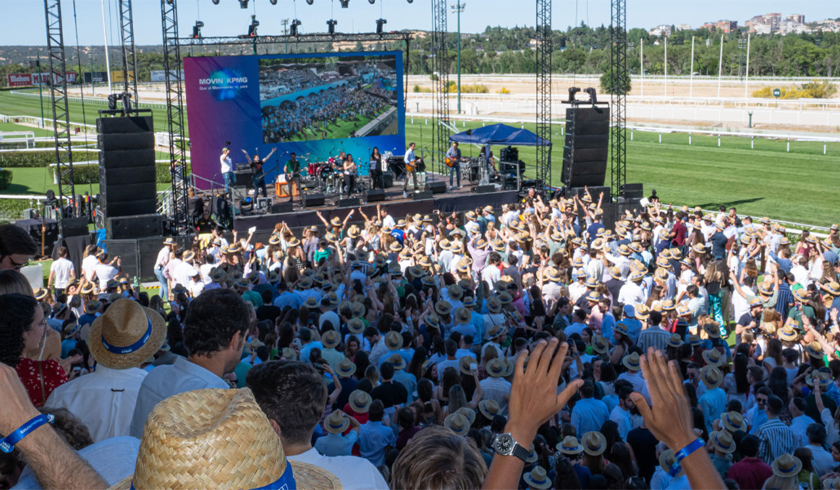 “Movin’ KPMG, que el movimiento no pare” fue una increíble y dinámica jornada en el Hipódromo de Madrid donde los 5.000 empleados disfrutaron con animaciones itinerantes, foodtrucks y puestos de comida, la actuación de una banda compuesta por 7 trabajadores ganadores de un casting musical previo realizado entre los empleados de toda España y la actuación estelar de Dani Martín en la que todos bailaron y se movieron al mismo ritmo.