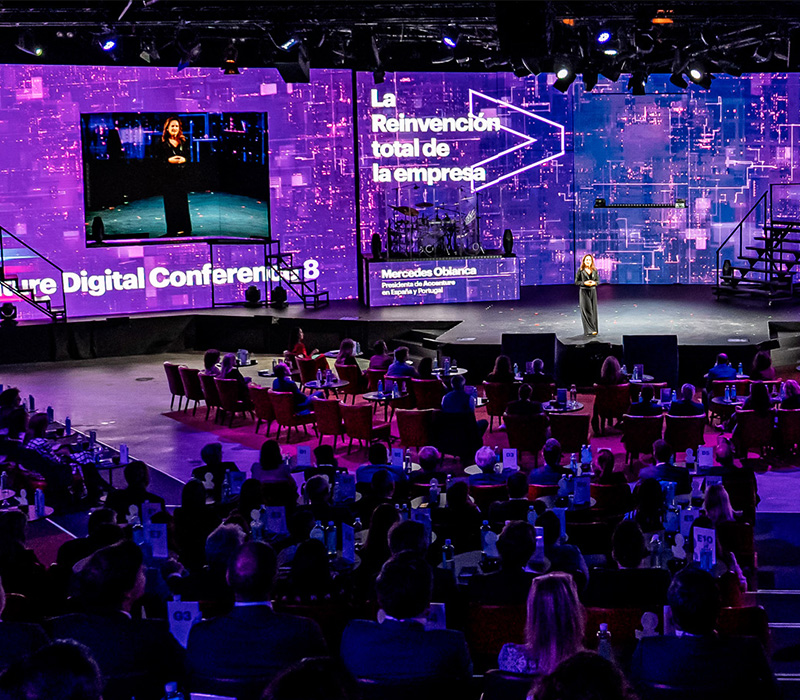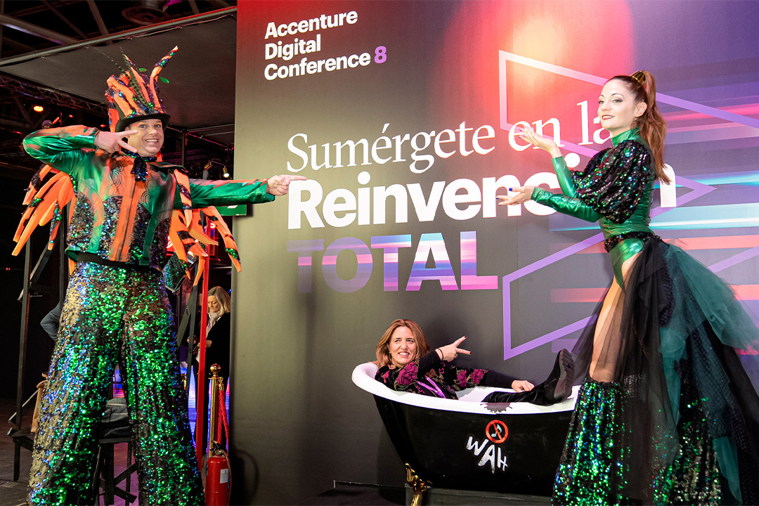 Desarrollamos una experiencia inmersiva entre los asistentes. Además de contar con distintas activaciones relacionadas con la transformación digital, contamos con la intervención de un ponente estrella traído desde el extranjero para charlar sobre los temas principales que cada año se discuten: Adam Cheyer, creador de Siri, hablando de su experiencia e innovación dentro de la Inteligencia Artificial. Presencia de robots y otros elementos a la vanguardia de la digitalización.